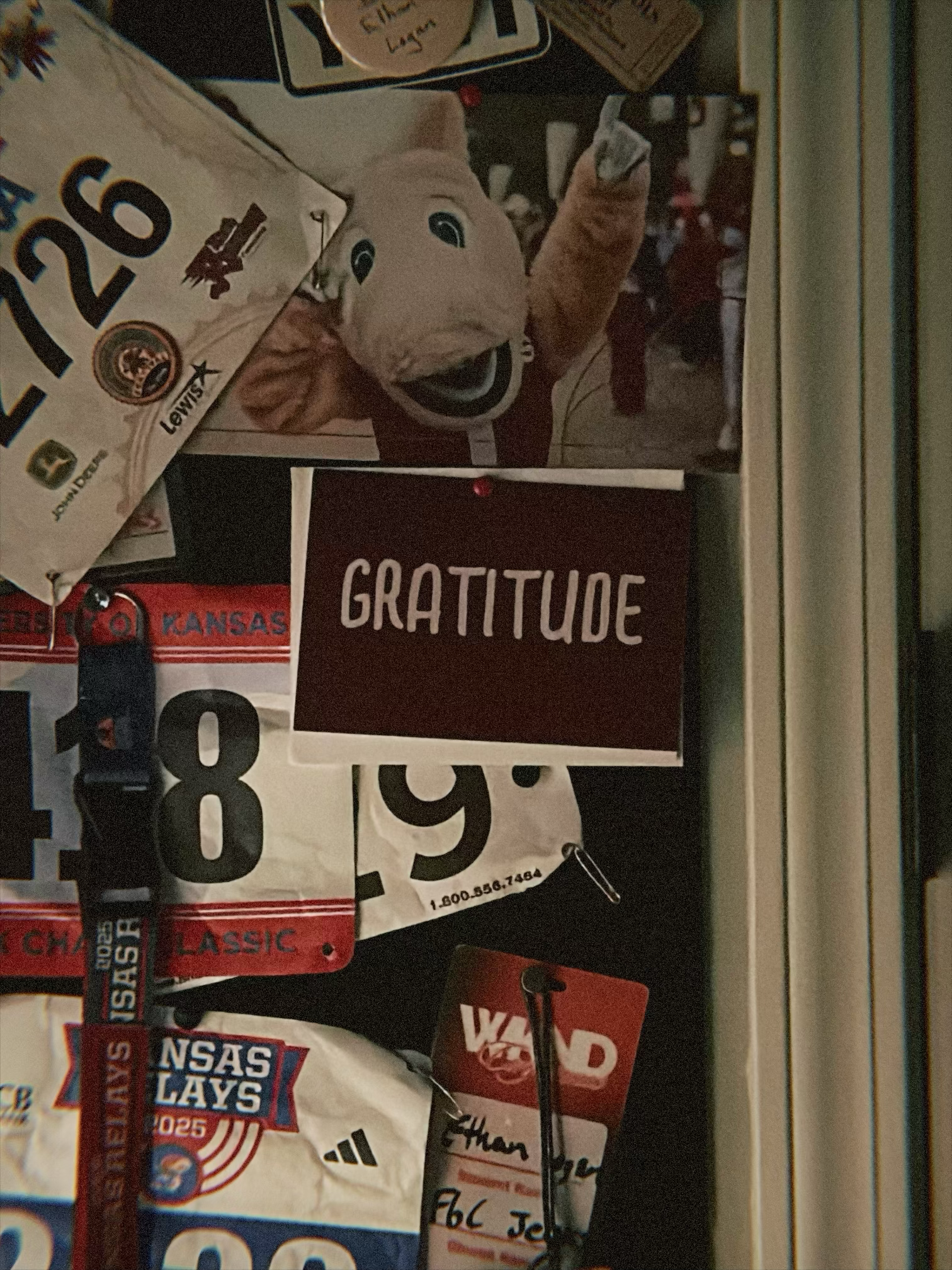 A gratitude letter from Coach Strahorn hanging in my bedroom.