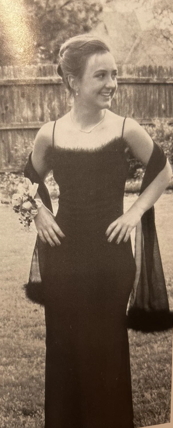 Every girl in 2000 needed the prom look, which included; a spaghetti strap dress, kitten heels, a shawl, a teeny tiny bag you can only fit your Smuckers lip gloss in, hair accessories, cubic zirconia jewelry, eyeshadow matching your dress, and finally to top it all off a combination of curly and straight hair!