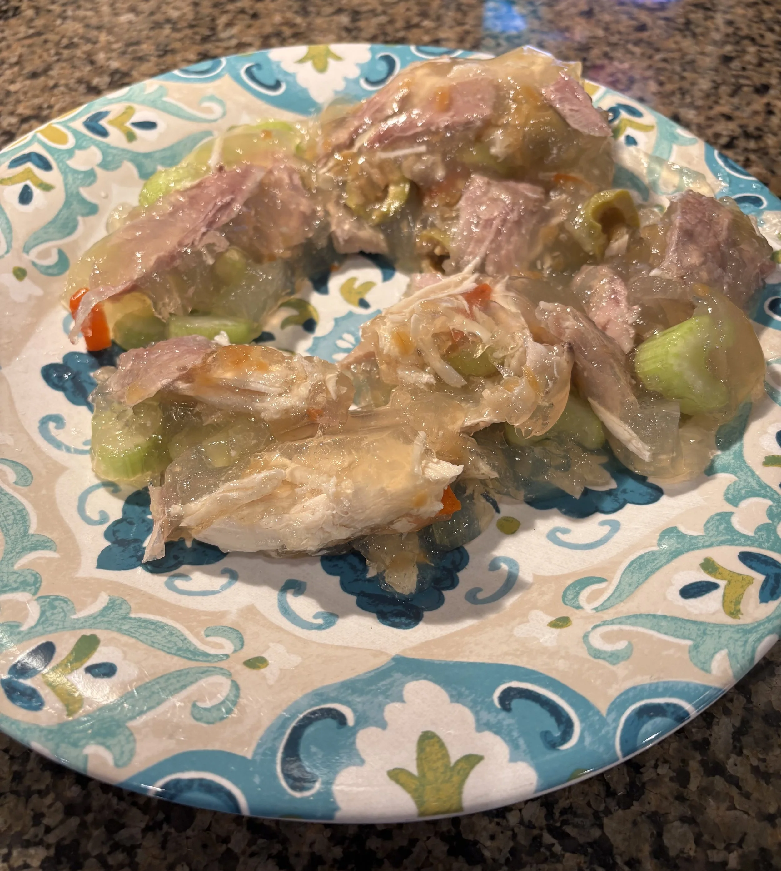 Truly, there has never been a more bizarre combination of flavors, textures, or smells than in jellied chicken salad. It’s like onion and chicken broth had a baby, and then that baby threw up in my mouth. The look of it alone was enough to almost send me running: a chunky, cold, slightly wet mess of ingredients thrown together. Chicken should never, ever be eaten cold, yet it was freezing, stuck in a gelatinous state. The squishiness of the jello clashed ridiculously badly with the crunchiness of the celery and olives. Whiffs of gelatin and lemon juice stunk up my kitchen (it still lingers to this day). I gagged before the fork even entered my mouth, and nearly threw up when it actually did. Even after I spit it out, the taste lingered: nasty, cold, and sticky for some reason. Hands down the worst thing I've ever had, and that’s coming from someone who’s had ox tongue.