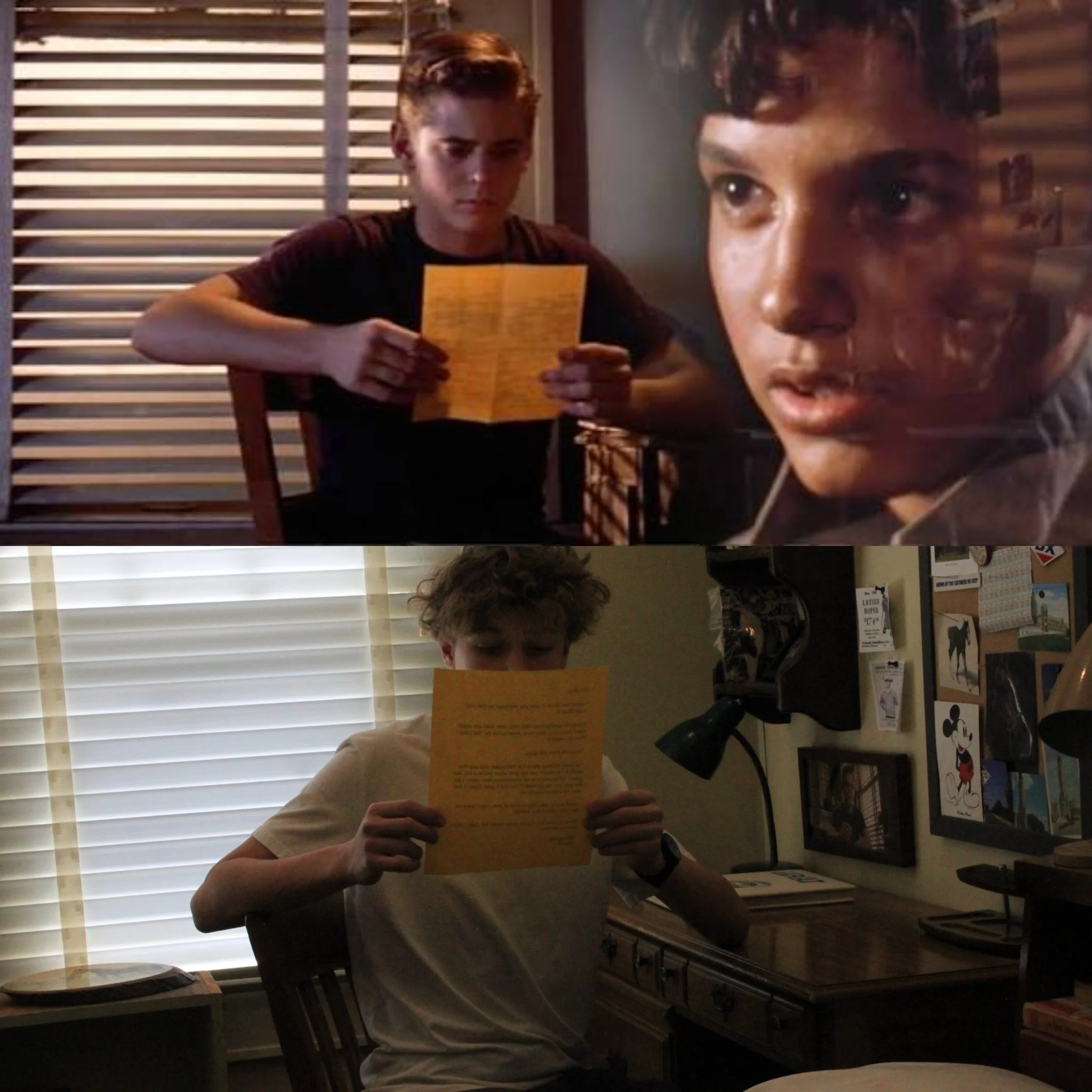 After the big rumble, everyone goes back to the Curtis house except Dallas and Ponyboy, who head to the hospital to see Johnny. While they are at the hospital, Johnny dies, causing Dally to run out of the hospital and leaving Ponyboy to find his own way home. This scene is from when Ponyboy finally makes it home and is telling everyone that Johnny is dead and Dally ran off. In this scene you can see Darry, Soda, and Steve reacting to hearing this news. We have Grayson playing Darel, Mason playing Steve, and Audrey playing Sodapop.