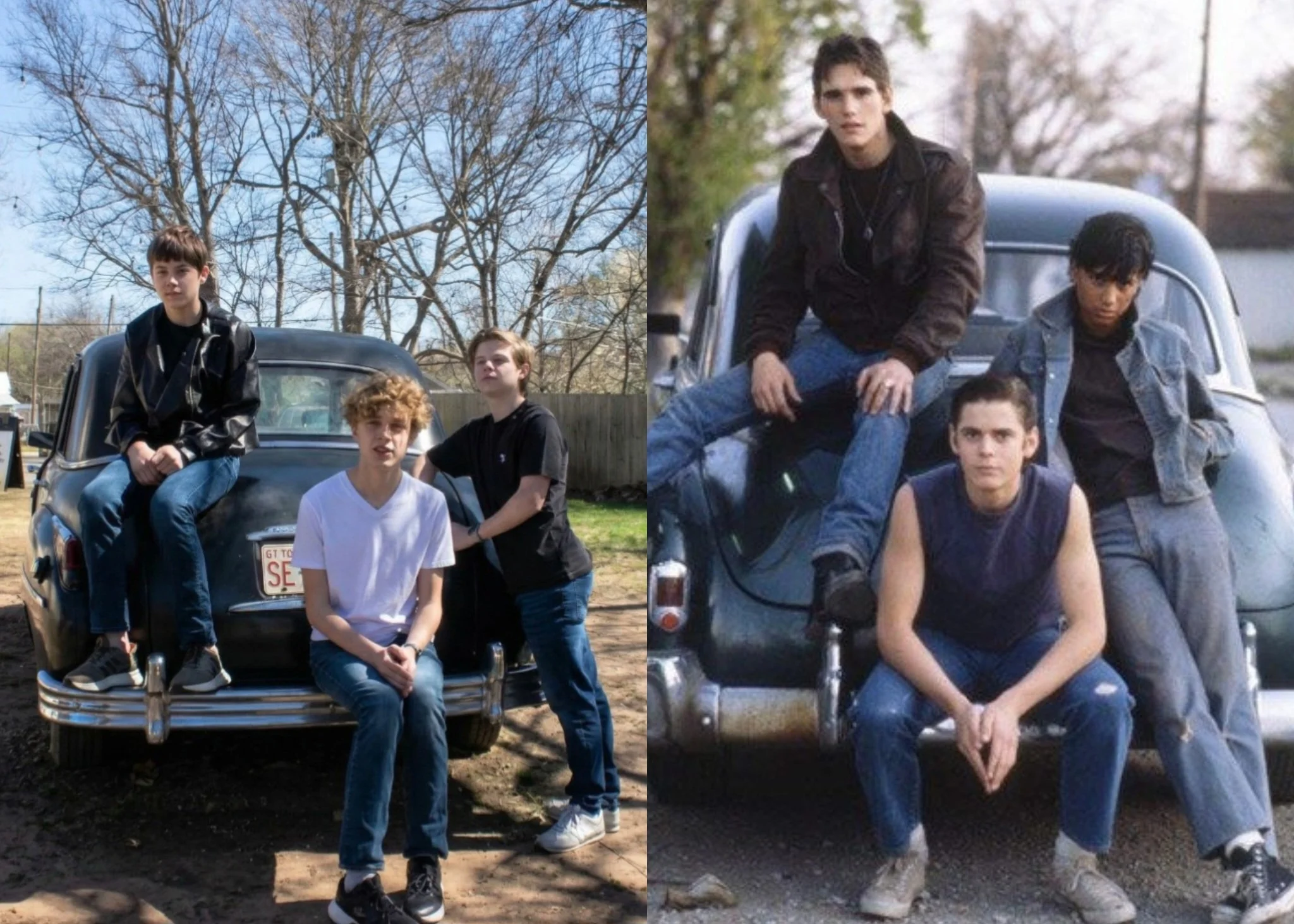 The first photo was used as a promotional shot for the movie. This is the original car that was outside the curtisis house in the movie which is parked in the yard of the museum. In our recreation we have Grayson playing Dallas Winston, Mason playing Poneyboy Curtis, and Lawson as Johnny Cade. We did not have the photo when we were recreating this and one of the staff members helped pose us so I do apologize for Lawson staring off into I don't know where.