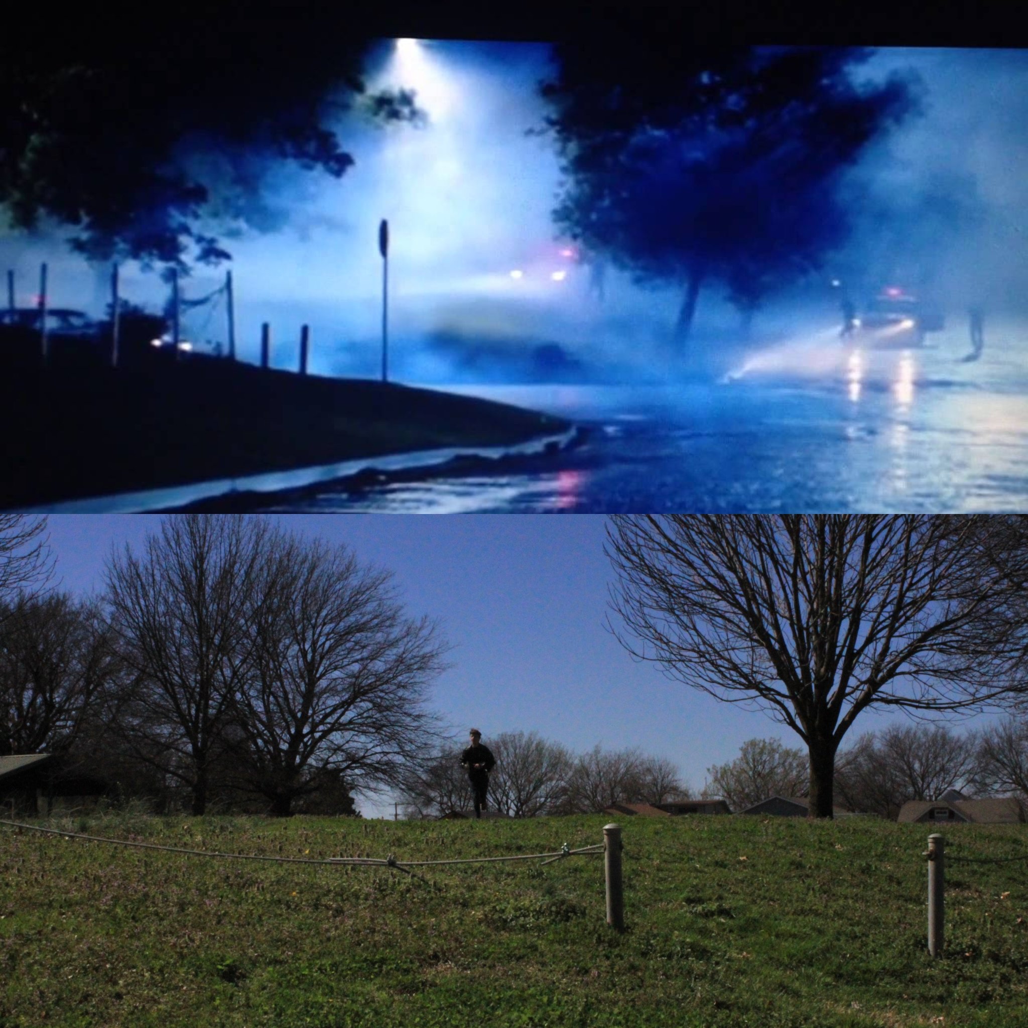 Now there is a major jump in time where they go to the drive-in movie theater, which we could not go to because it was not open when we were able to take photos, and then Johnny stabs Bob at the park, which we could not create this scene because the fountain they used for the movie was temporary and does not exist there anymore. Next, Pony and Johnny run away to a church in Windrexfill, Oklahoma. We did not re-create any scene in Windrexfill because we were focusing on parts of the movie that were filmed in Tulsa.