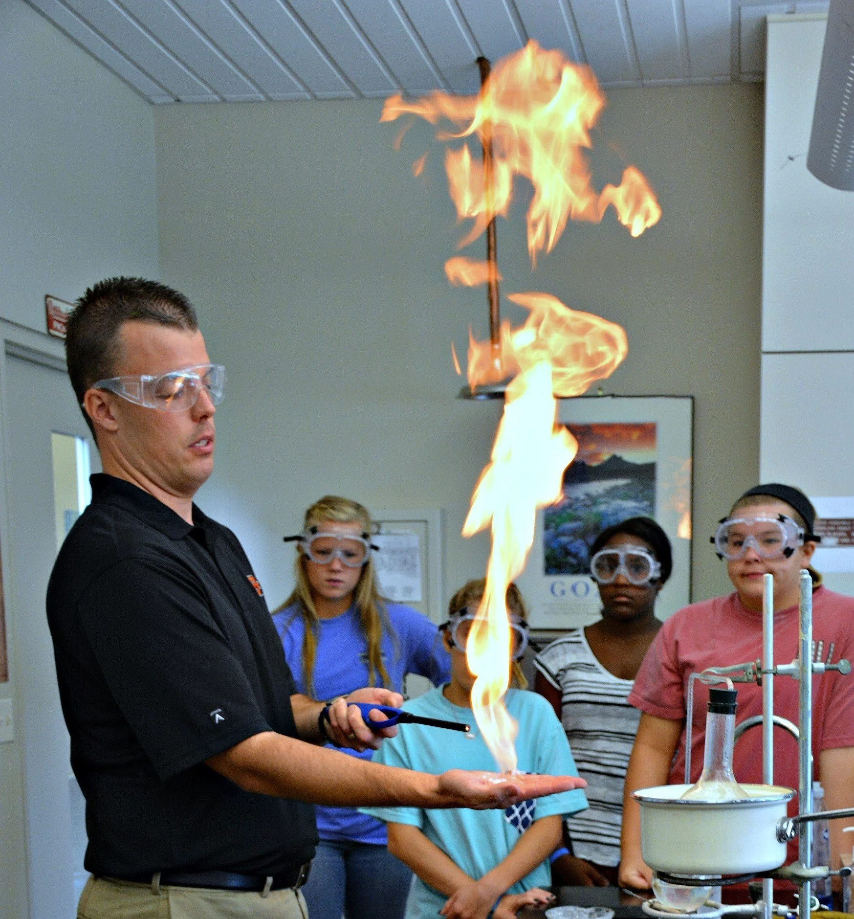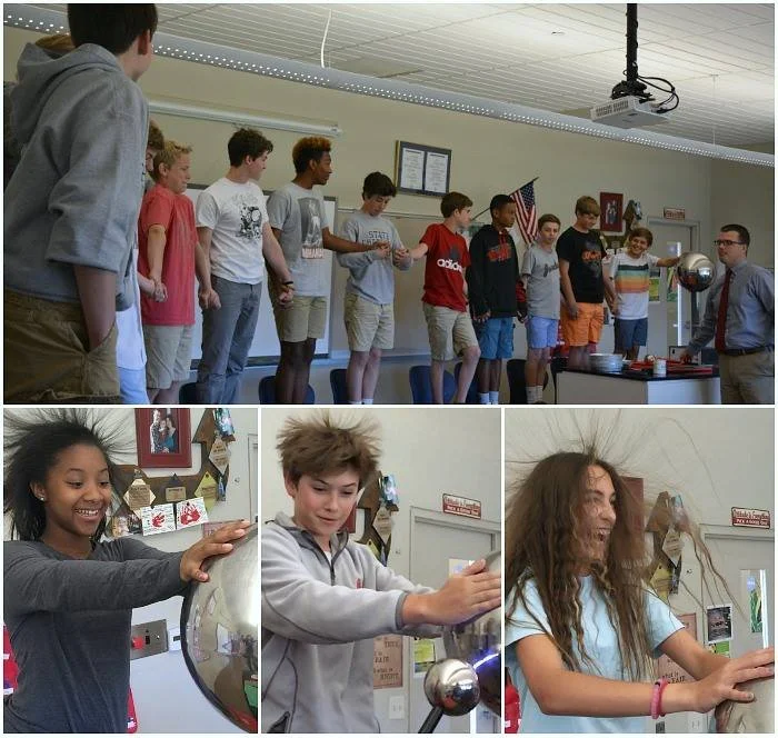 Mr. Morris as a Bixby science teacher, taking a hands-on learning approach with his kids, teaching them about electricity in different ways (photos 1, 2, and 3).