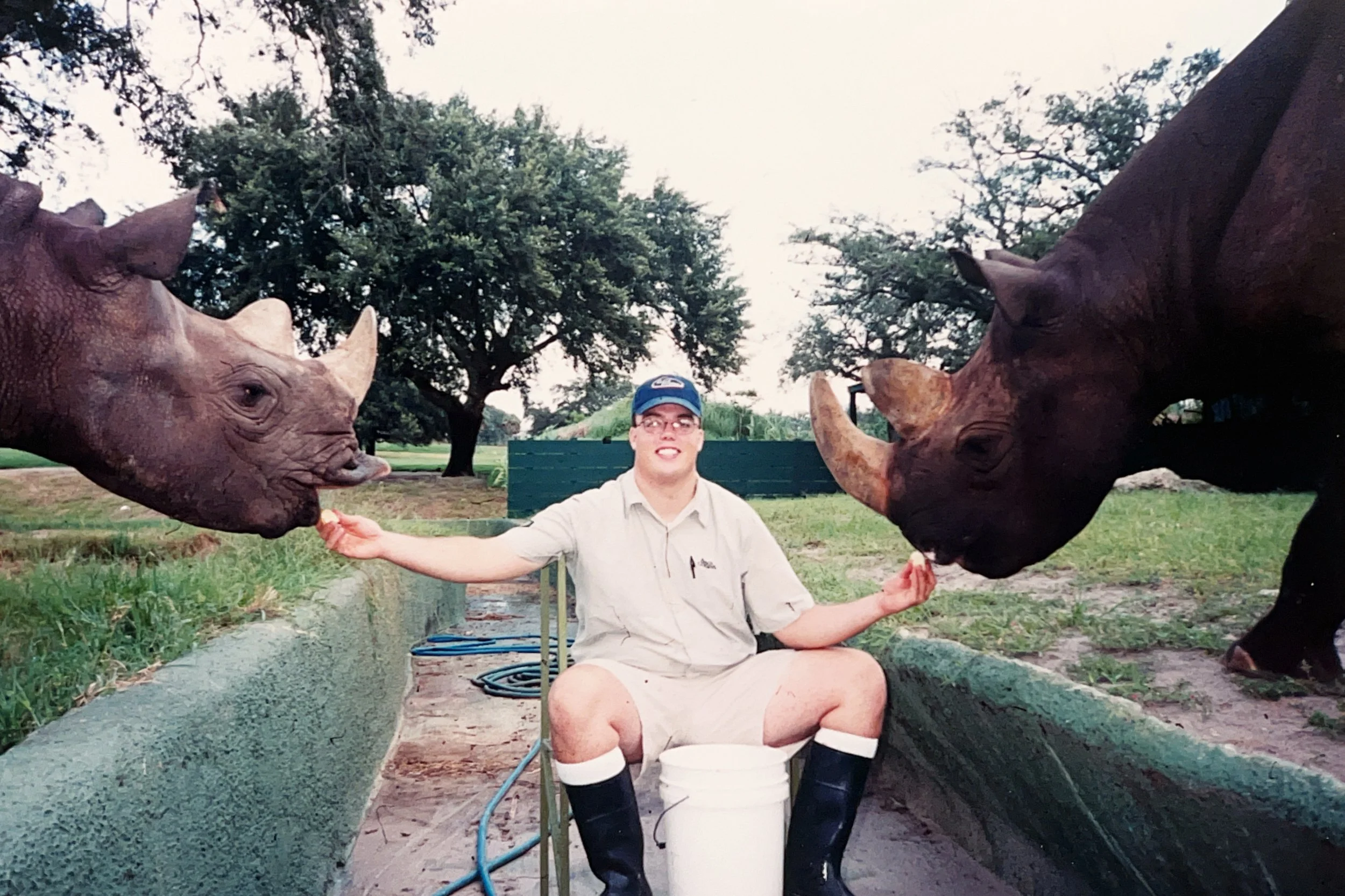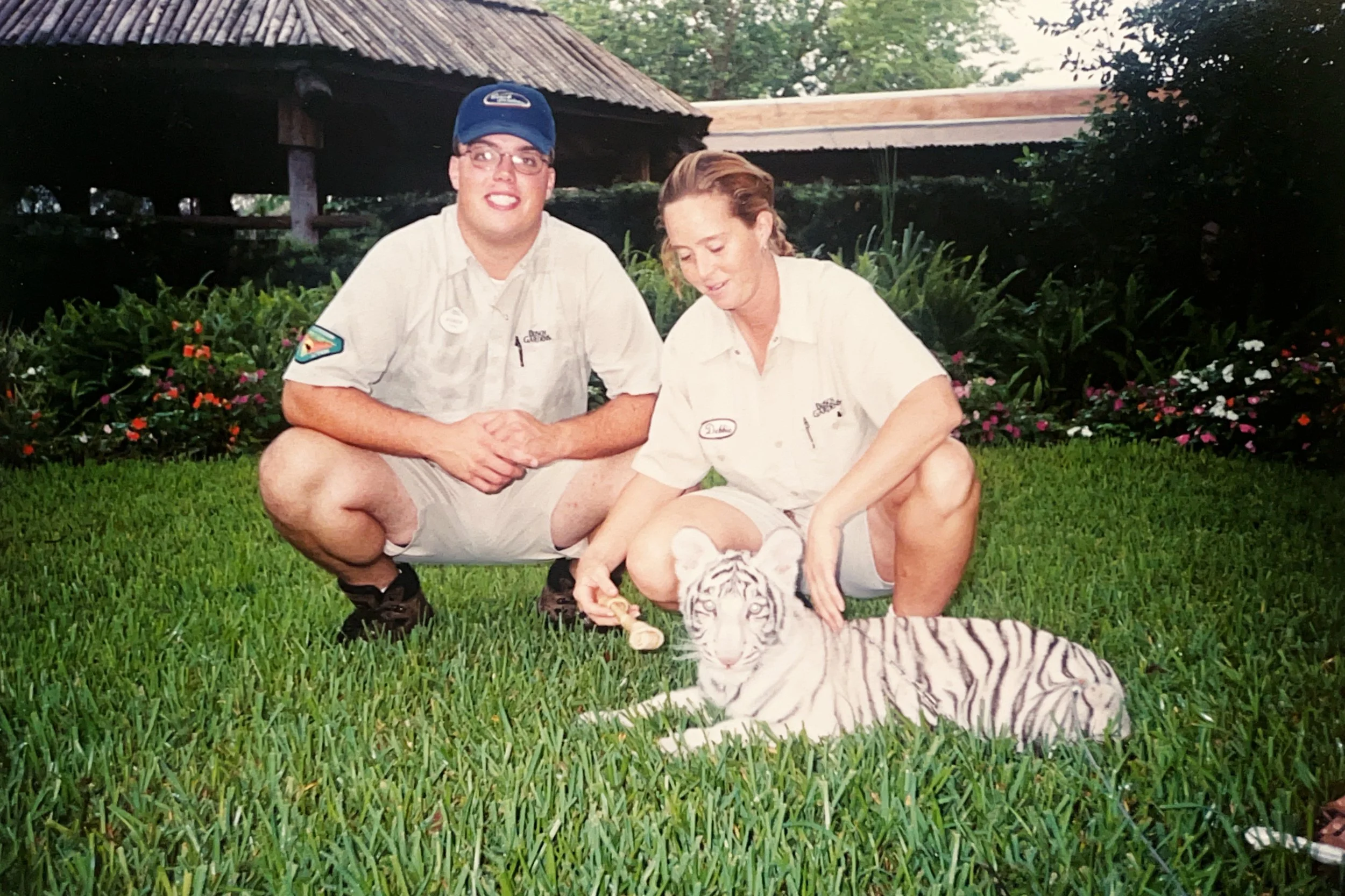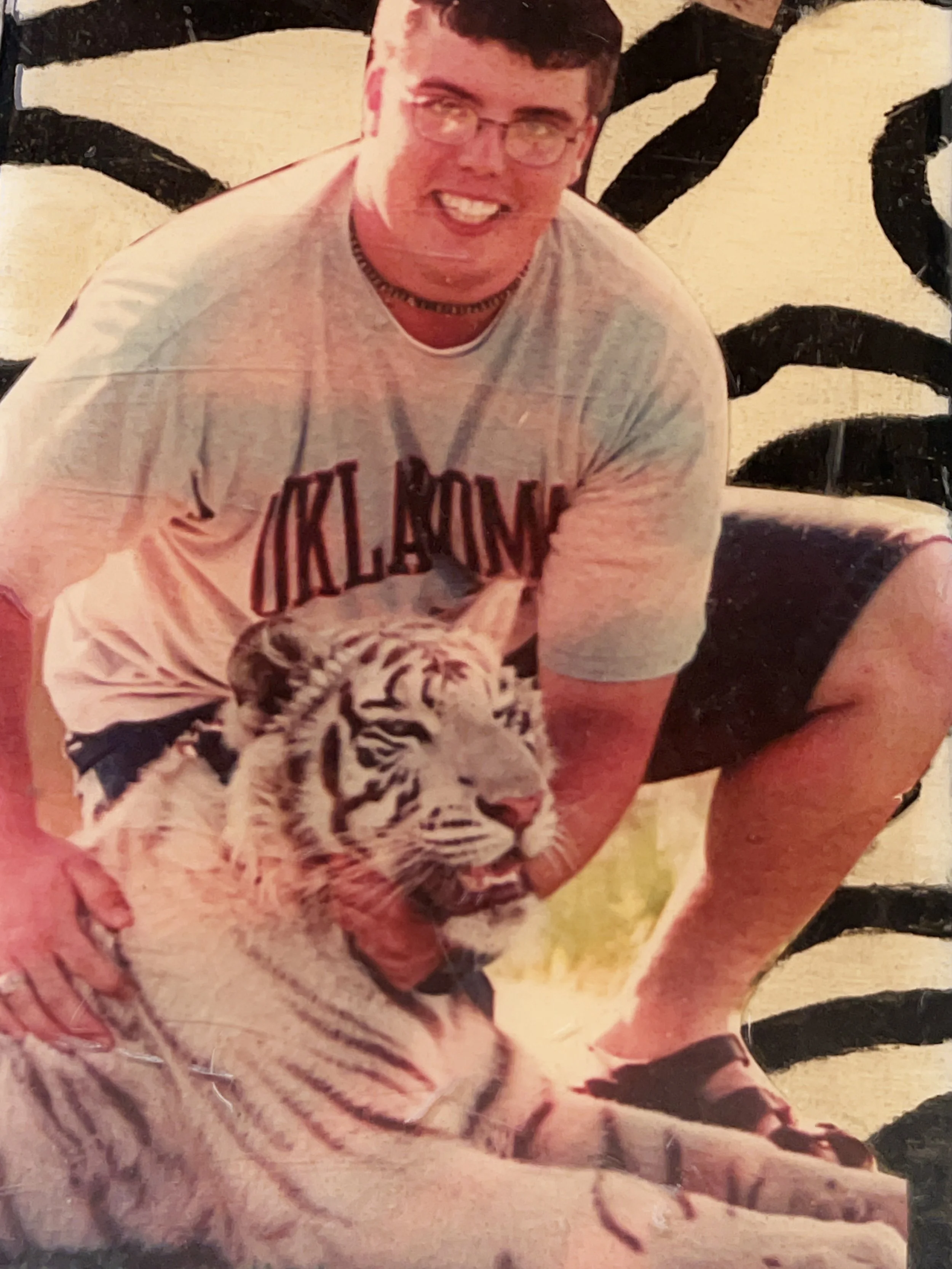 Mr. Morris in his early 20’s working with White Bengal Tigers and Rhinos at the OKC Zoo (photos 10, 11, and 12).