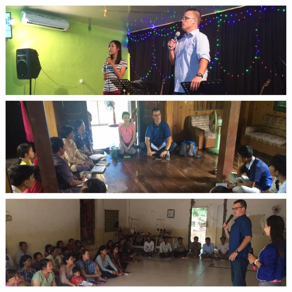 Mr. Morris teaching and preaching on his mission trip to Cambodia (photos 7, 8, and 9).